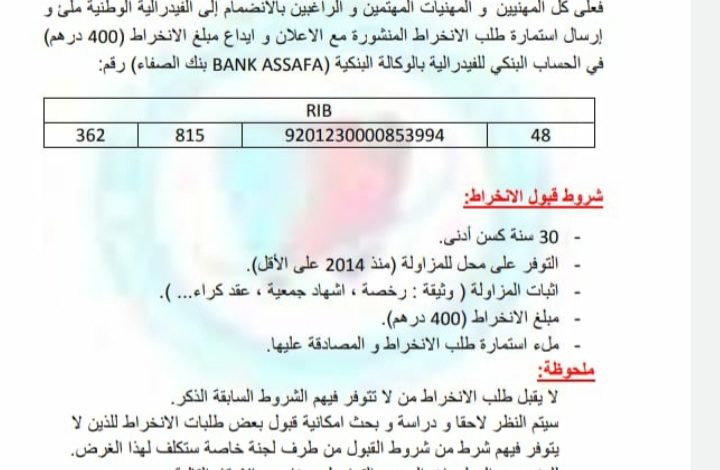 من اجل الإنخراط والإنضمام الى الفيدرالية الوطنية
