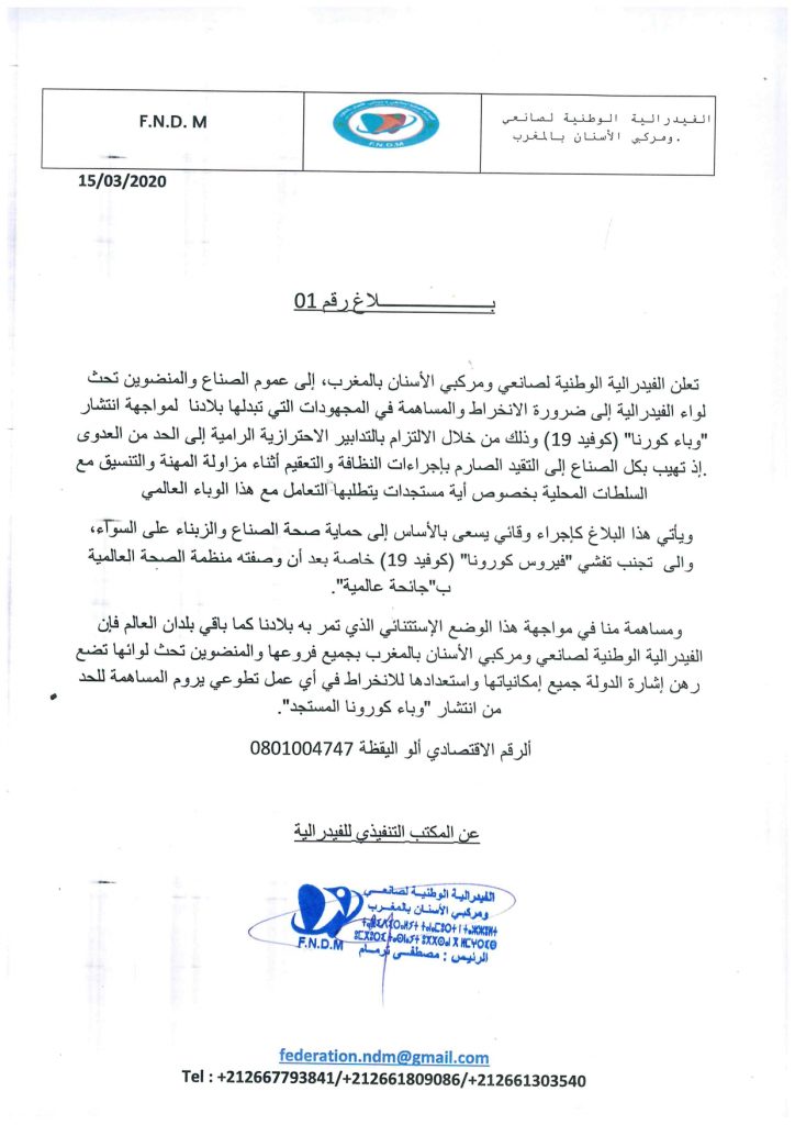 اعلان:من الفيدرالية الوطنية لصانعي ومركبي الأسنان بالمغرب*